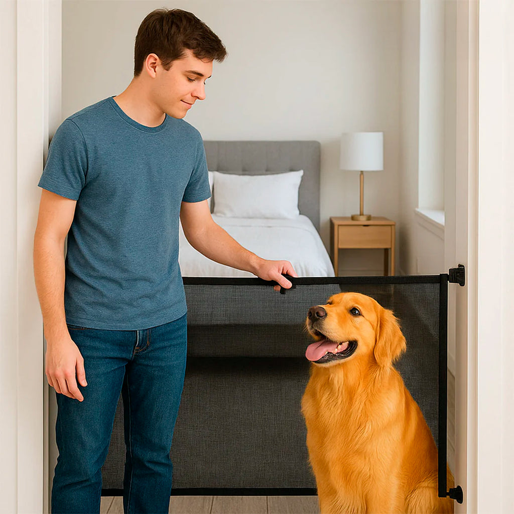 La Puerta Flexible con Malla Retráctil de Seguridad MILGENIAL es ideal para mantener a los niños y mascotas seguros, mientras disfrutás de un espacio libre y ordenado.