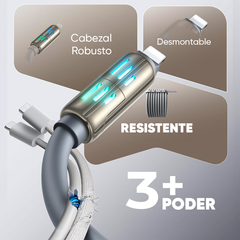 ✅ 4 en 1 real: USB-A o USB-C → USB-C o Lightning; un cable para casi todo.