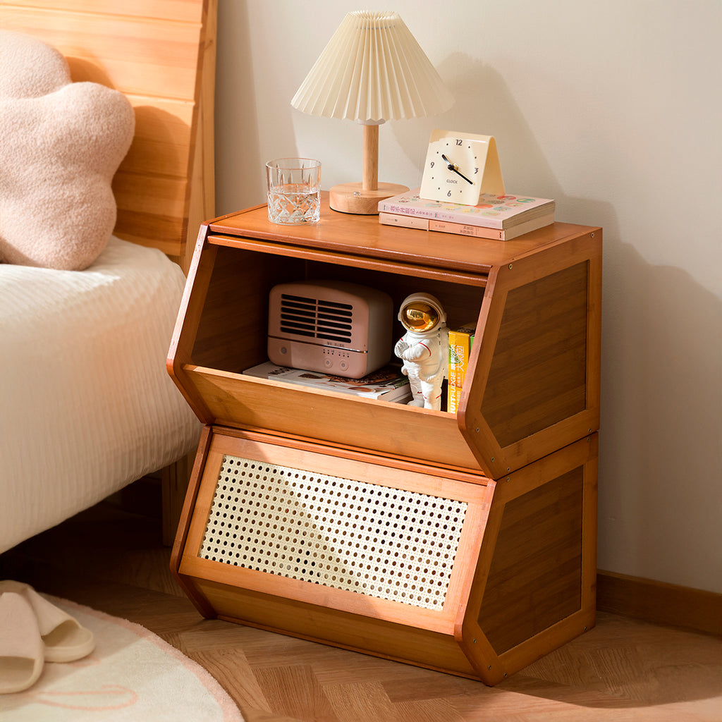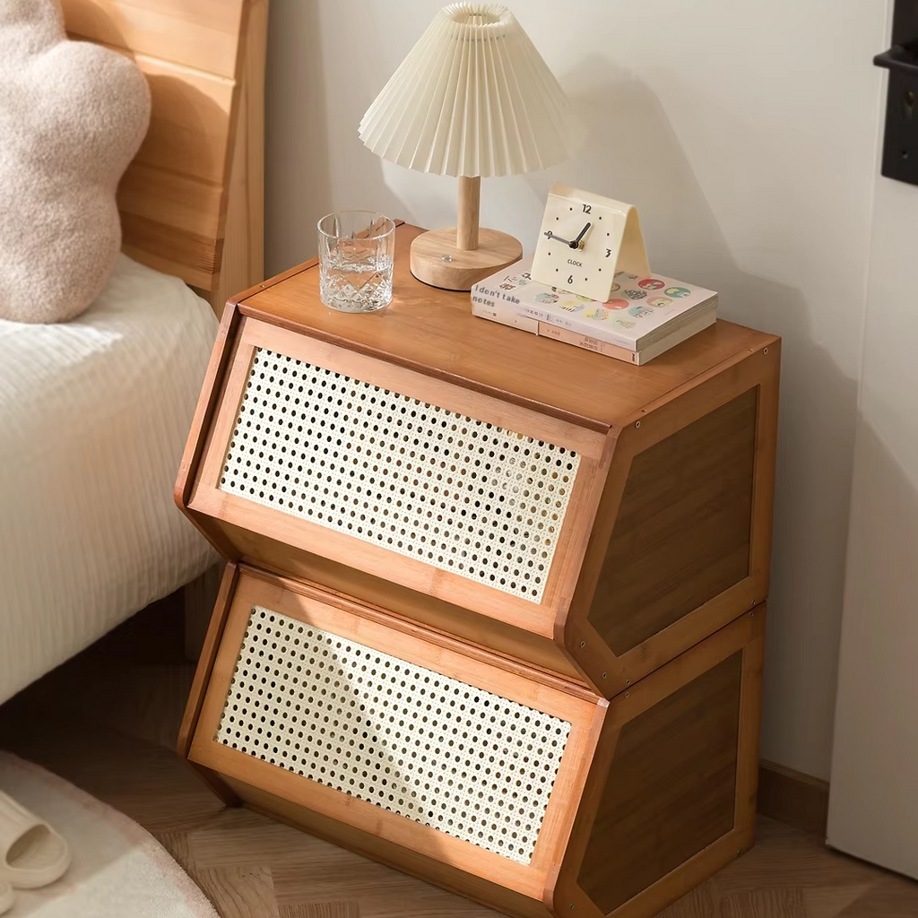 👉 El Canasto Apilable de Bambú con Puerta oculta y protege el contenido, y su diseño modular te permite crear columnas o combinaciones a medida en living, dormitorio, baño o home office.