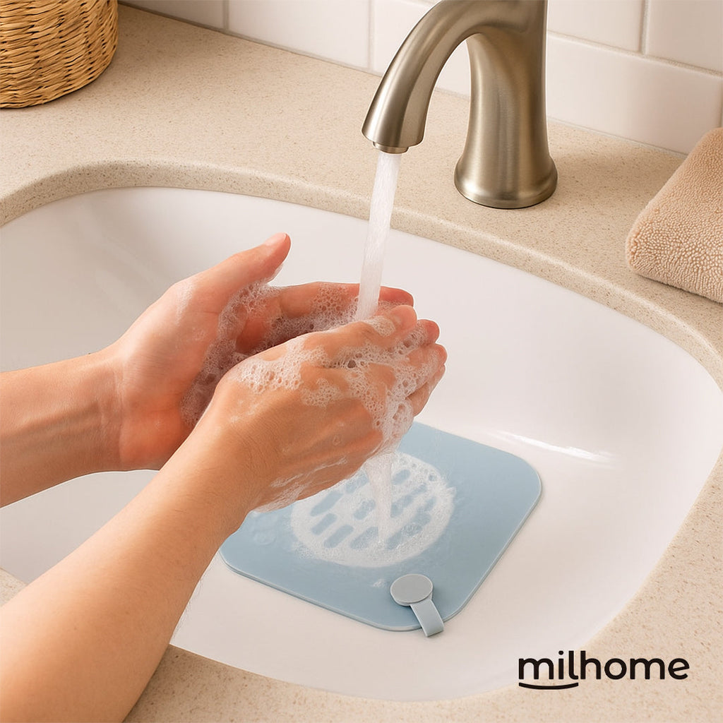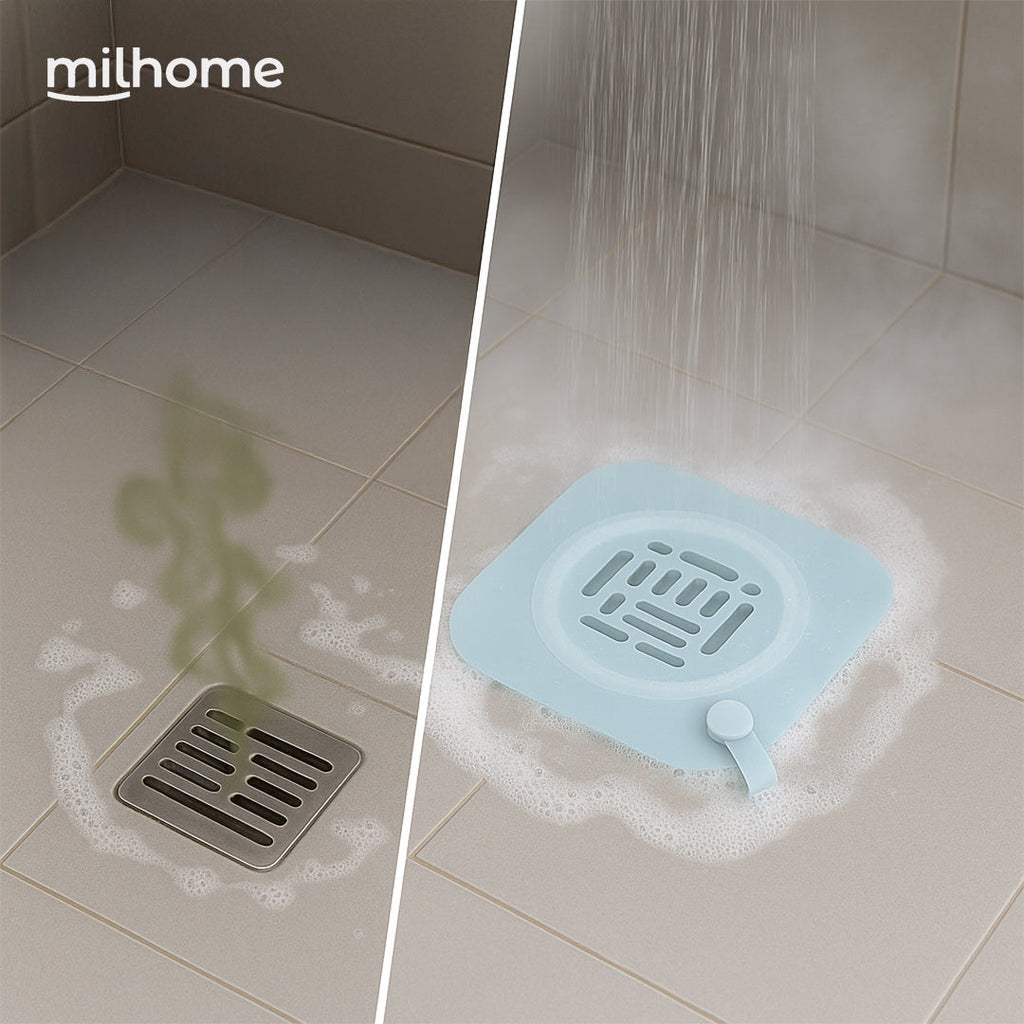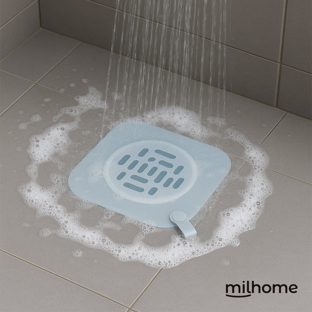Con la Cubierta para Drenaje Milhome, eso se terminó. Su diseño de silicona se adhiere perfectamente a la superficie, bloqueando olores e impidiendo el paso de insectos sin afectar el drenaje.