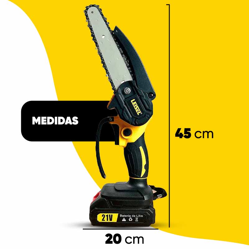 La Mini Motosierra con dos baterías Leisel te permite realizar cortes limpios y precisos sin esfuerzo. Su diseño inalámbrico y liviano te brinda total libertad de movimiento.
