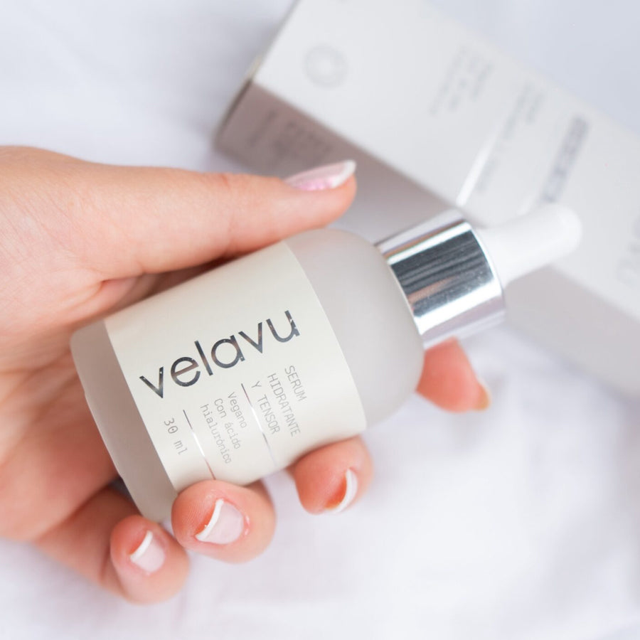 El Serum Hidratante y Tensor Velavu es una fórmula avanzada y vegana diseñada para brindar hidratación intensa, mejorar la elasticidad y reforzar la suavidad de la piel. Ideal para zonas delicadas que necesitan un cuidado extra, con una textura ligera que se absorbe rápido y sin dejar residuos grasos.