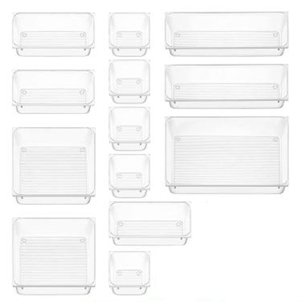 Este Set de 13 Organizadores en Acrílico Transparente viene en 4 tamaños diferentes para que acomodes como quieras: cosméticos, bijou, accesorios, oficina, cocina o lo que se te ocurra.