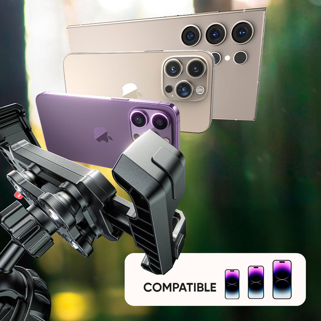 ✔️ Usá GPS, música y llamadas con el equipo siempre firme, incluso en calles con pozos o empedrado.